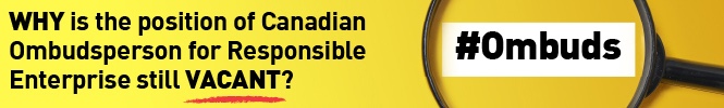 “As one of the authors of the multi-stakeholder CSR Roundtable Report (2007), MiningWatch Canada joined with mining industry representatives in calling on the Government of Canada to establish an Ombudsperson. The need for this office is as great as ever, but it must finally be granted the investigatory powers the government initially committed to and be provided independence from the government.” – Catherine Coumans, Research Coordinator, MiningWatch Canada
