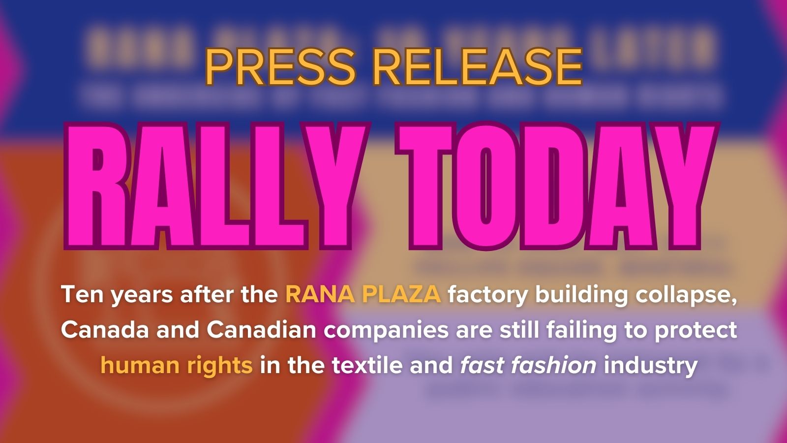 Press Release – Rally today: Ten years after the Rana Plaza factory building collapse, Canada and Canadian companies are still failing to protect human rights in the textile and fast fashion industry April 24, 2023 Read More »